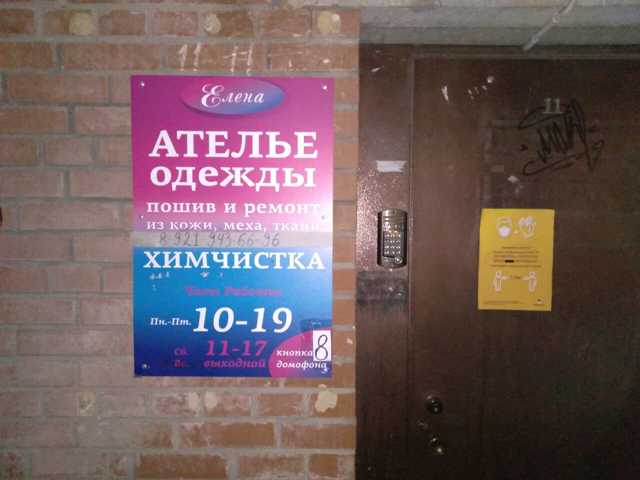Стояла под дверью пол часа ♀️никто не отвечал в домофон, режим работы в будние с 10 до 20, когда я пришла время было 11:10, где? По закону если вы ставите режим работы, сотрудника не может не быть на рабочем месте! Смысл вашей услуги… Так же оставлен номер телефона на табличке , никто не отвечает) Спасибо вы испортили мой день и я осталась без ремонта одежды и без настроения. Ранее приносила туда одежду, еще прикол , что цену ставят на обум