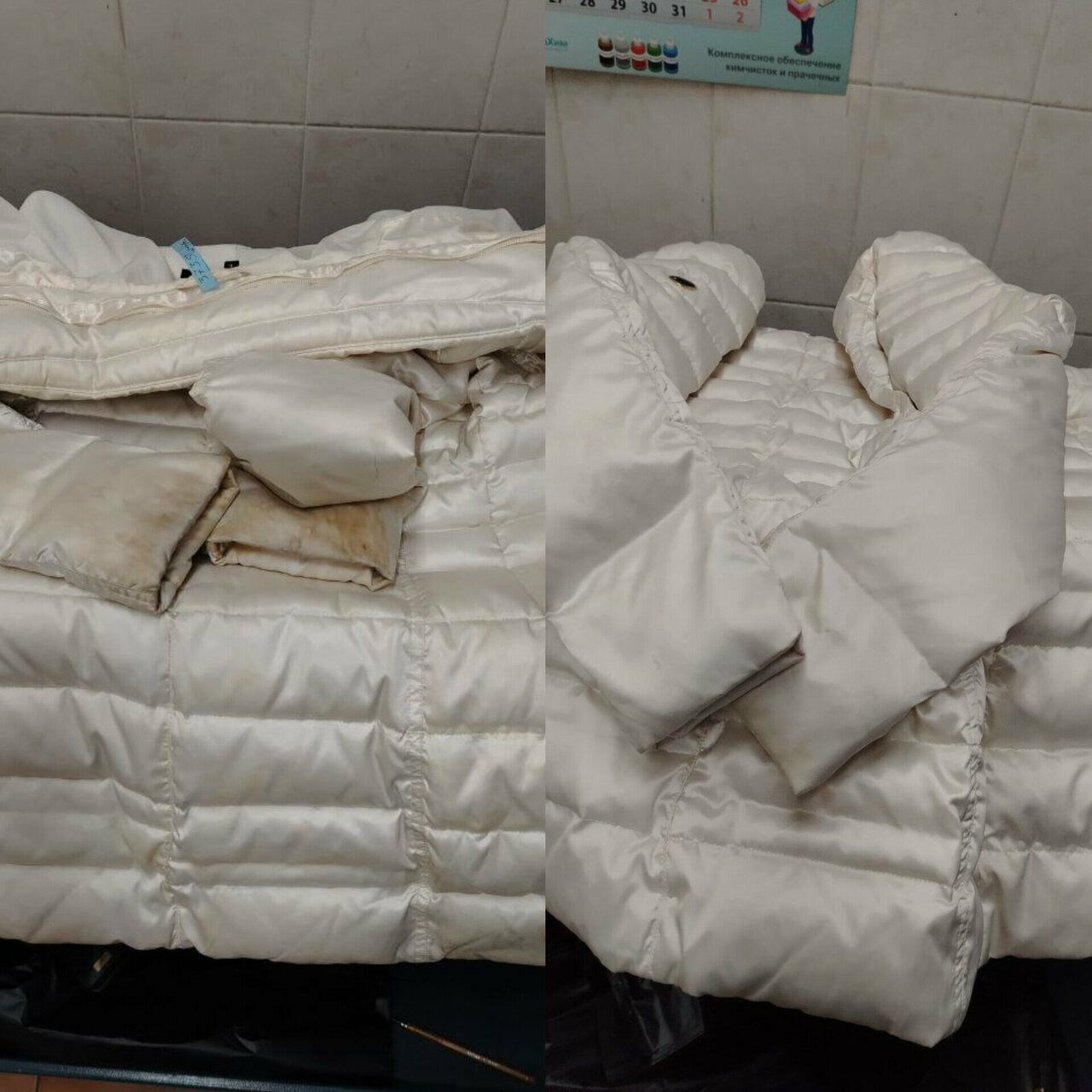 Сдавала куртку на синтепоне, приемщицу предупредила, что нужна сухая чистка, стирать куртку нельзя. На куртке есть ярлычки, там тоже все написано. По факту куртку просто постирали и убрали грязь с воротника. Синтепон на спине весь превратился в комки! Цена вышла за короткую куртку 1400! Могла бы так же бесплатно дома постирать. Постирали за один день, я повелась из-за срочности, а в среднем такие работы за два дня делают. Не рекомендую!