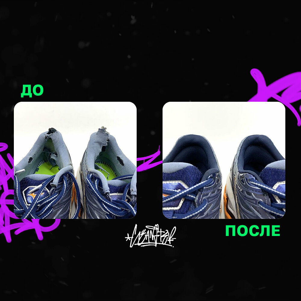 Отлично отремонтировали задники и прочистили кроссовки Добавил фото до/после Кроссовки как новые, ценник отличный