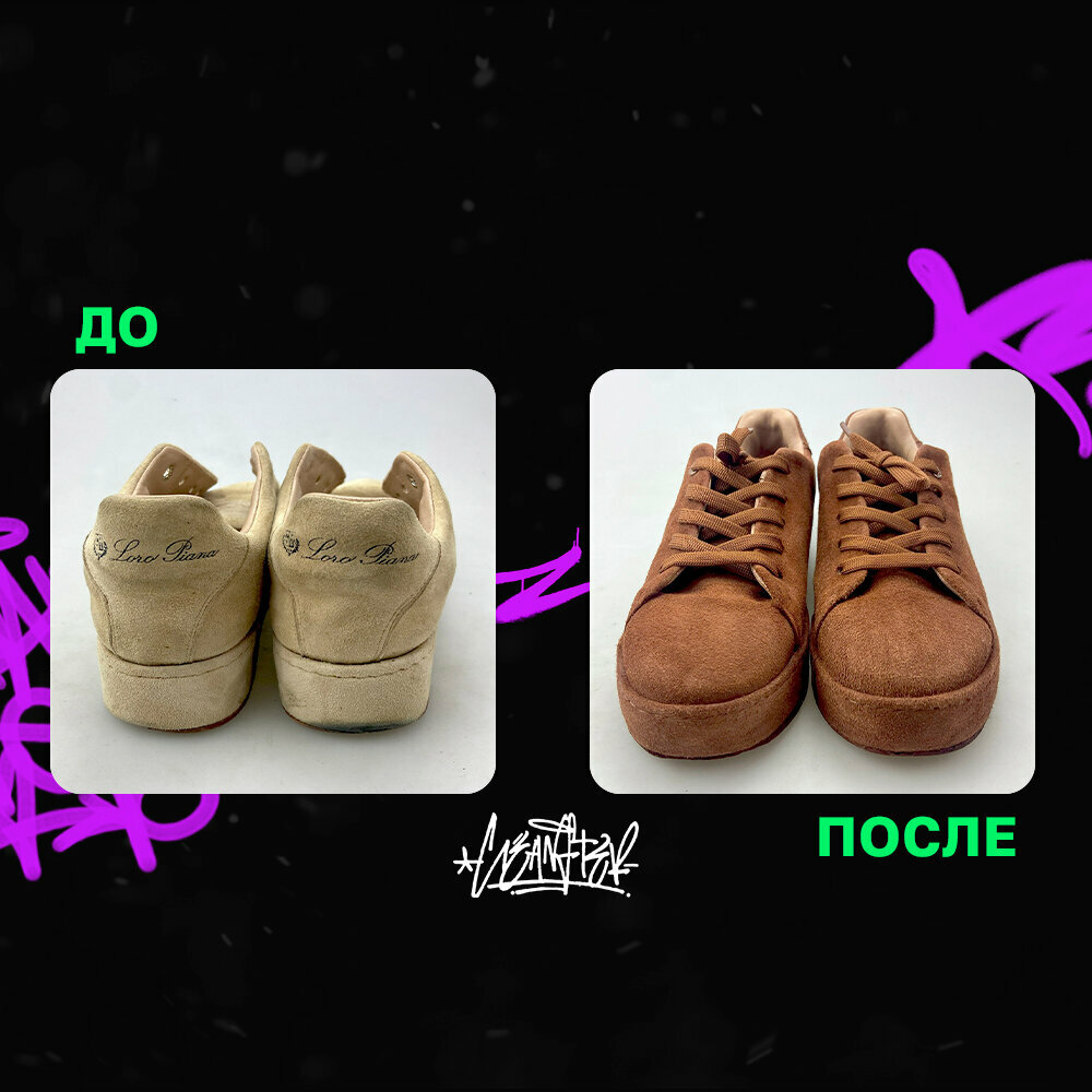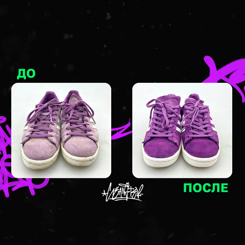 Я готова вечно петь оды ребятам — они способны вернуть к жизни даже самые «убитые» пары обуви! Первый раз обращалась к ним в мае, когда в путешествии порвала колесиком чемодана носок замши на своих Ozweego. Думала: «ну все, вот и пришел им конец!», но надежды не теряла, нагуглила эту чудесную конторку, которая мне в смешные сроки вернула к жизни, казалось бы, безнадежную пару кроссовок. Спустя еще полгода скитаний и активной, можно сказать беспрерывной, носки уже другой пары Ozweego, голубой, они выглядели жалко, отчаянно требовали капитальной химчистки. И вот, в декабре, я наведалась к ребятам снова, уже за услугой химчистки, и — о, чудо! — они снова справились на 100/10! В подборке фото «после», «до» сфотографировать забыла, но уж поверьте мне на слово, там без слез было не взглянуть на них. В общем разрекламировала этот сервис всем друзьям и не планирую останавливаться! Сервис на миллион. Успехов и удачи ребятам)