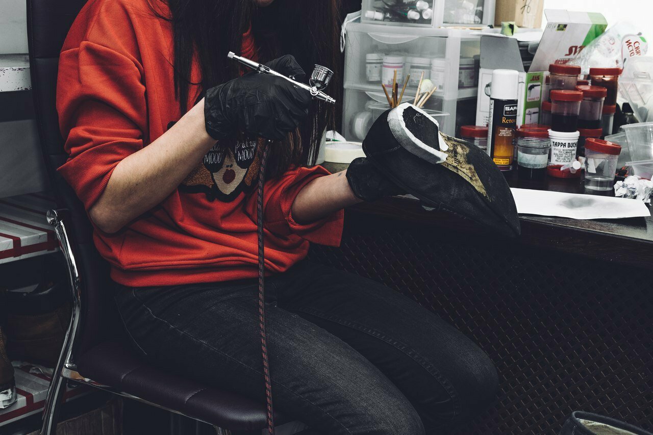 Покраска обуви и сумок из любых материалов с использованием итальянских профессиональных красителей и пневмоинструмента.