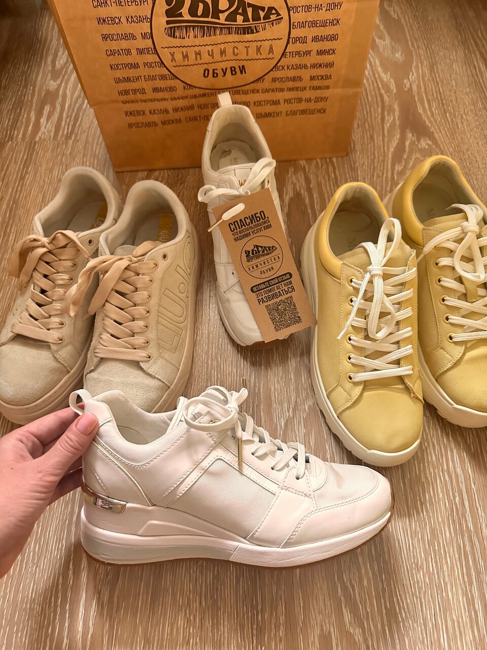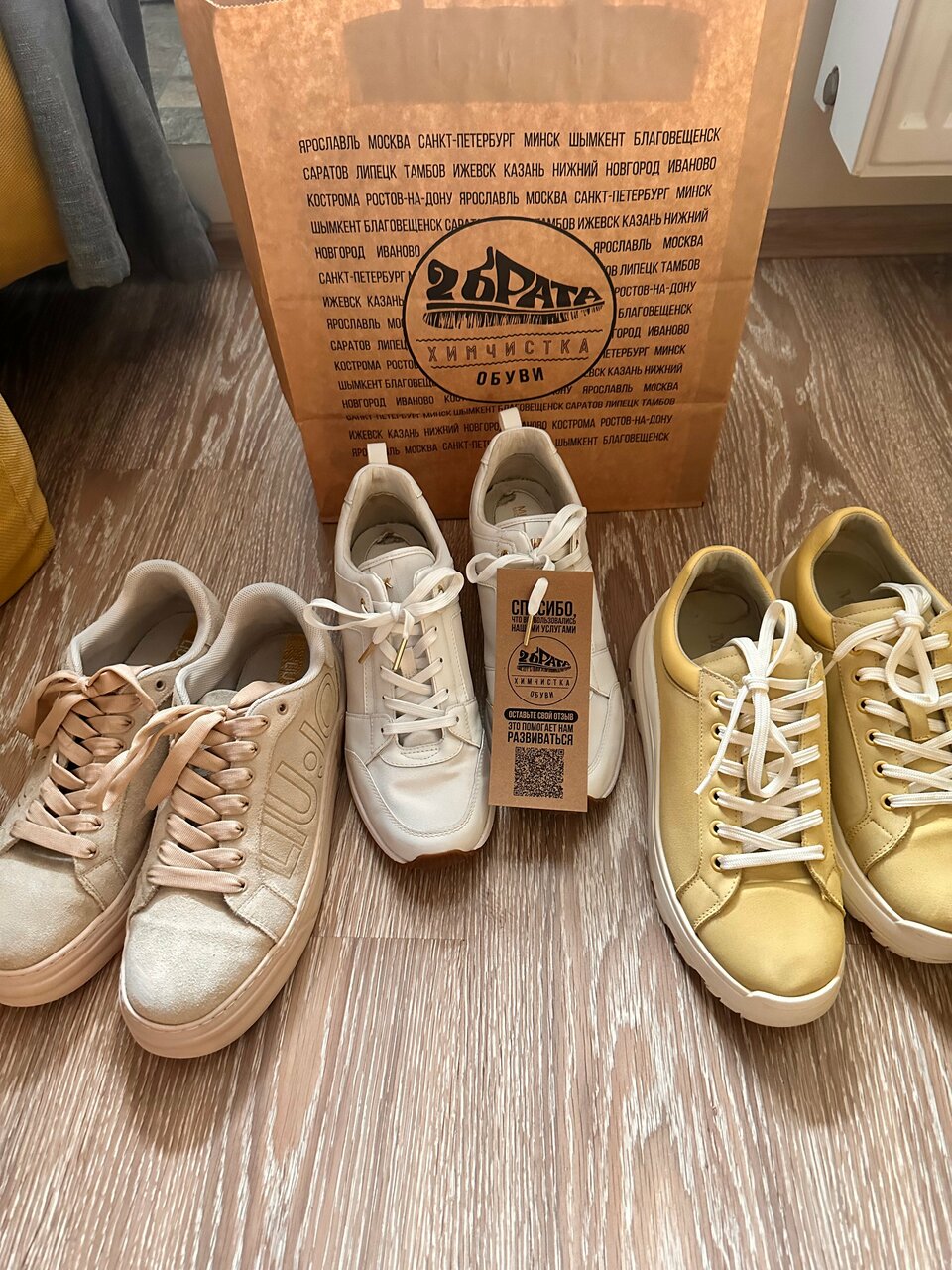Отлично почистили бежевые ботинки (изнутри и снаружи). Обувь выглядит как новая из магазина Не ожидала такой результат. Спасибо!