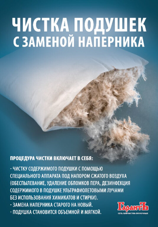 - Чистка: Подушка с заменой наперника 1500₽
