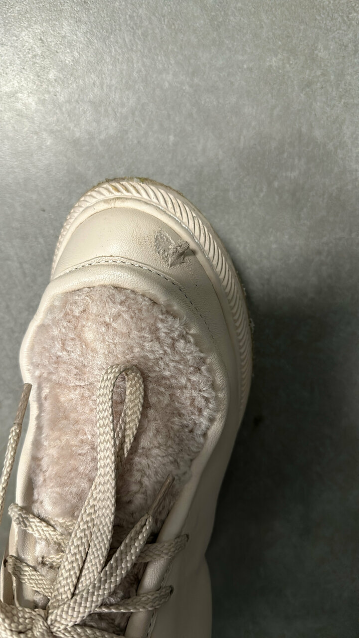 - Некачественное выполнение работы (окраска замши не видна).
