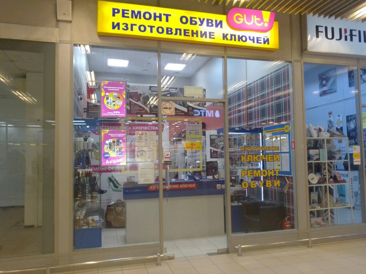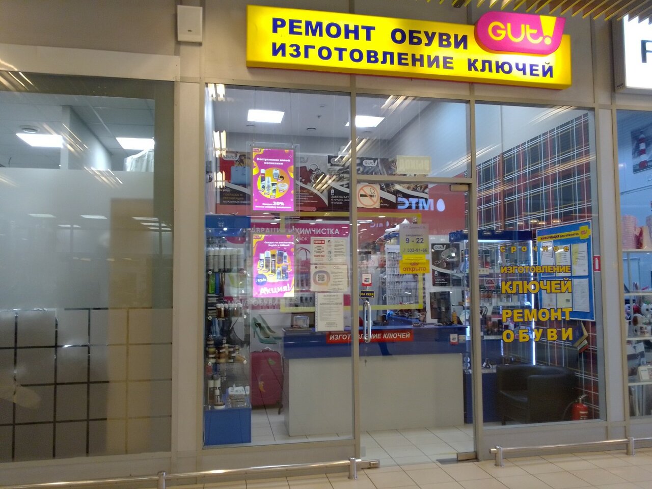 Добрый день, хочу поделиться отзывом на данное место. Первый раз я его посетил примерно 4-5 лет назад, пришел с проблемой порвал кроссовки. Меня тепло встретила сотрудник Марина, вежлево всё рассказала. Так же проконсультировали меня по срокам работ. Когда забрал свои кроссовки был удивлен результатом, они были прям как с завода!!! Мастер Сергей сделал всё отлично. Теперь я хожу только сюда со своими проблемами, всегда тепло встречают и помогают в моей проблеме!