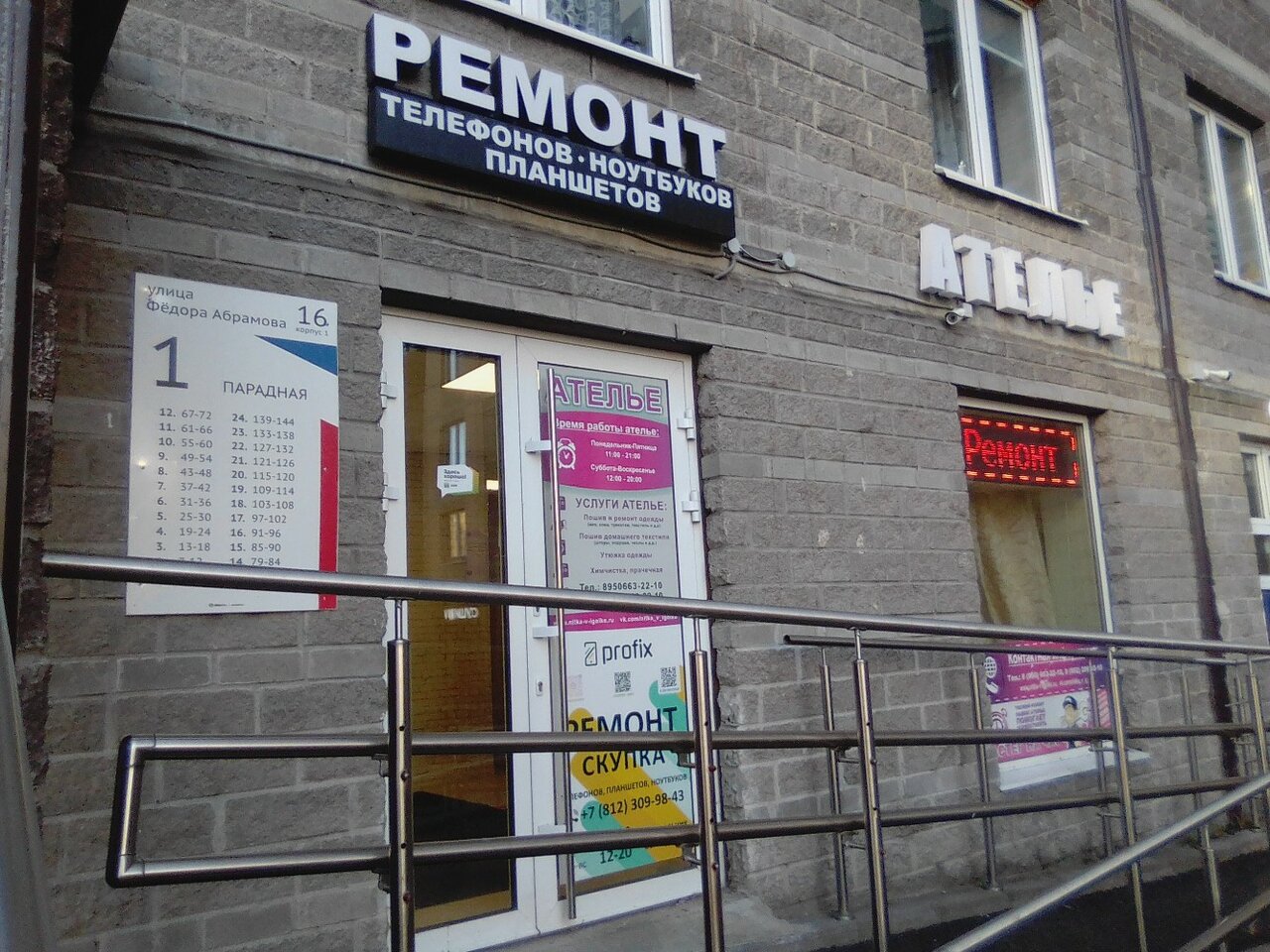 - Полный адрес: Санкт-Петербург, посёлок Парголово, улица Фёдора Абрамова, 16, корп. 1