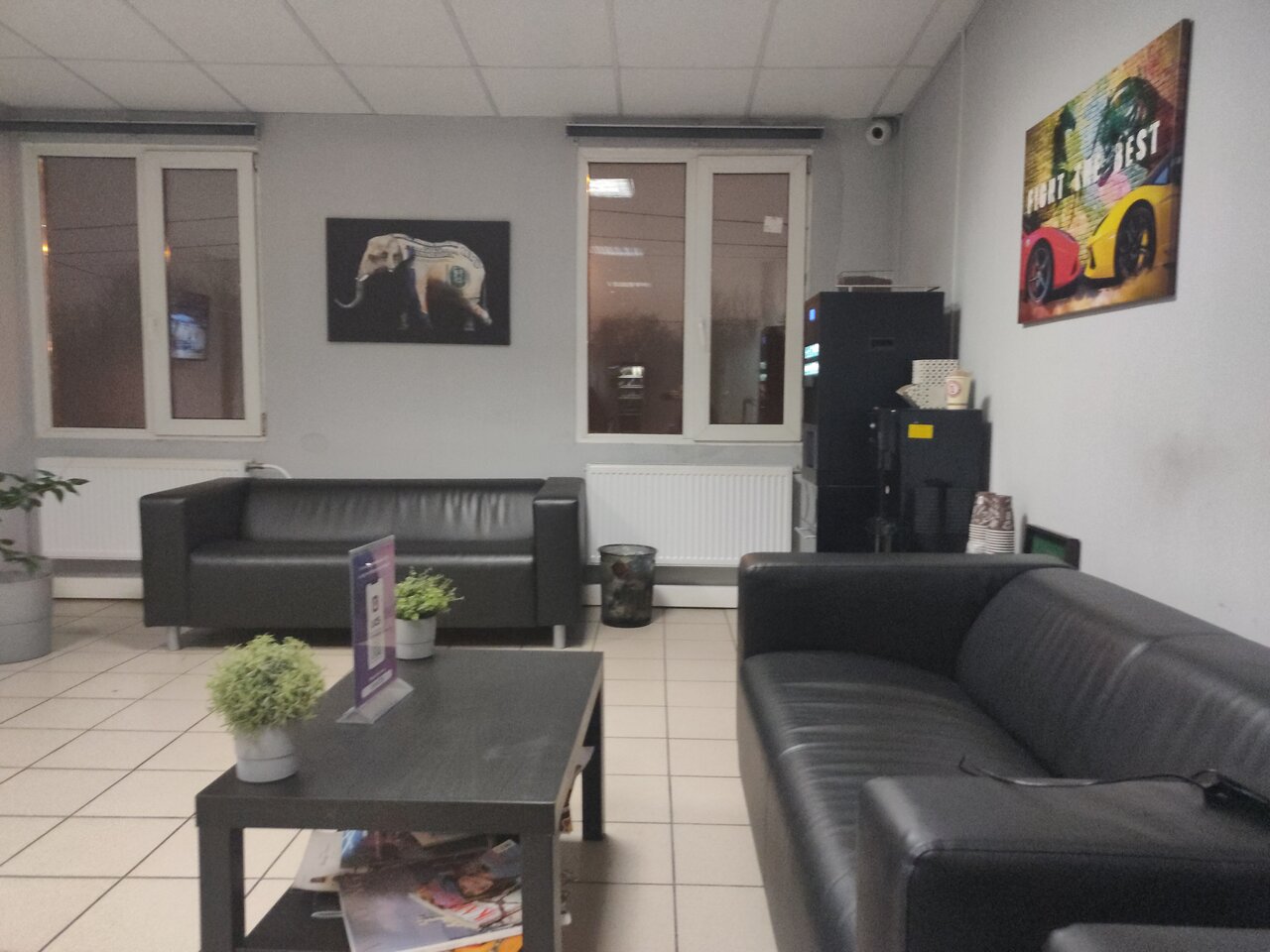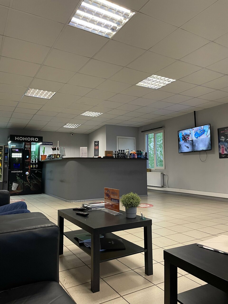 Очень удобное место и внимательный персонал. Есть зона отдыха, кофе, туалет, телевизор. Очень удобно ожидать окончание ремонта.