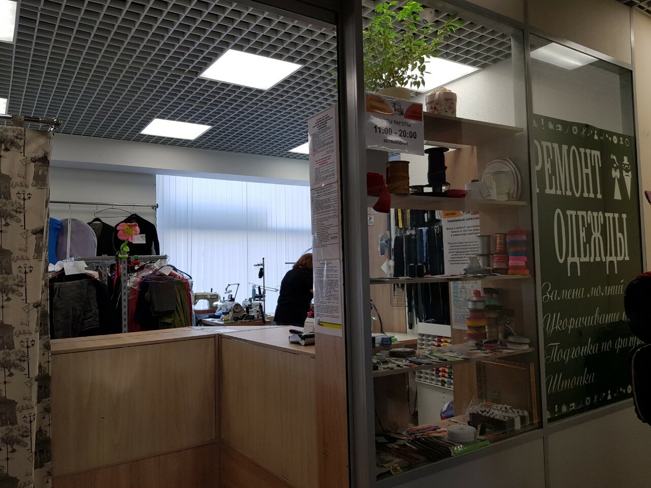 Мне нравится! Устраивает цена на подшив одежды и приятные женщины работают 🙂 Раньше они в помещении были справа, сейчас слева магазина — за углом.