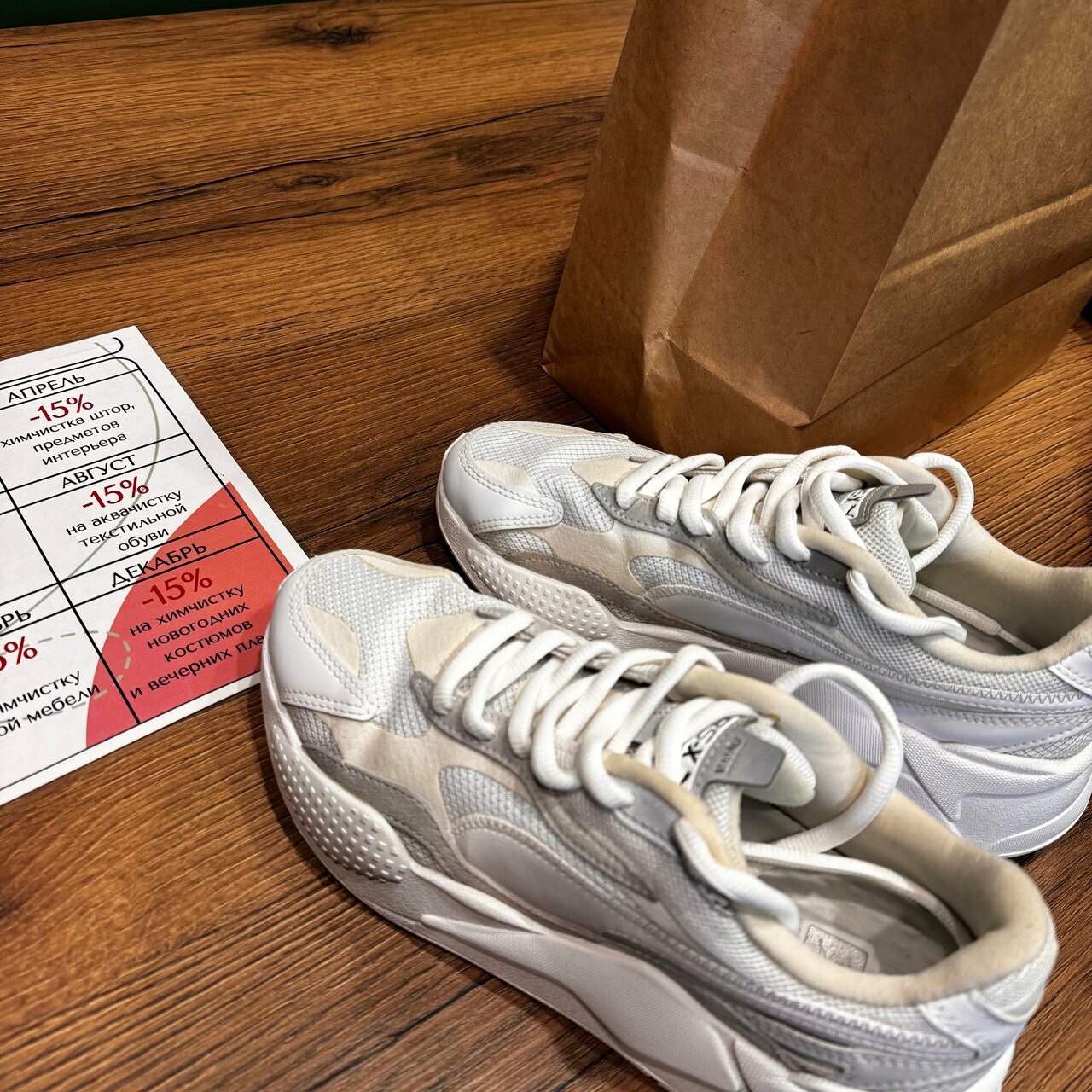 Отлично почистили кроссовки и ботинки. Думала что пятна останутся, но всё ушло! Спасибо вашей студии! Рекомендую к посещению.