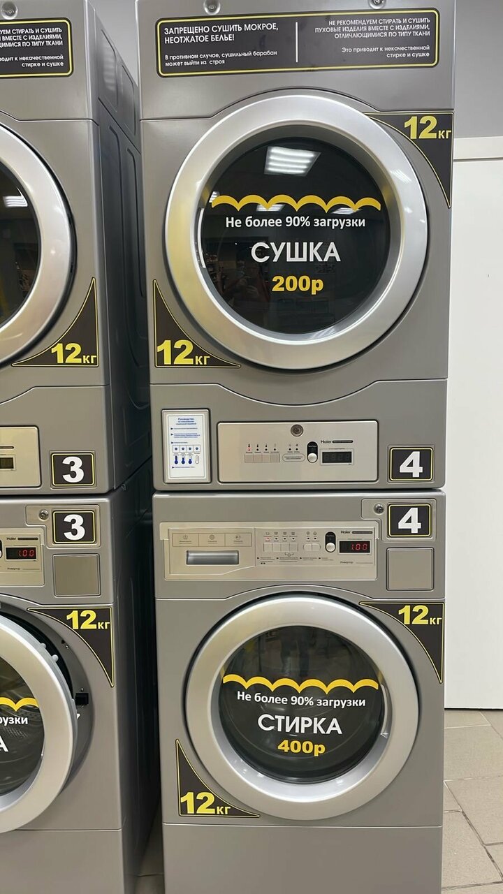 Всё достаточно просто, понятно, удобно. Химия от лучших производителей. Можно постирать верхнюю одежду (например пальто) и сразу высушить. А пока идет стирка , можно посетить Пятёрочку. Рекомендую.
