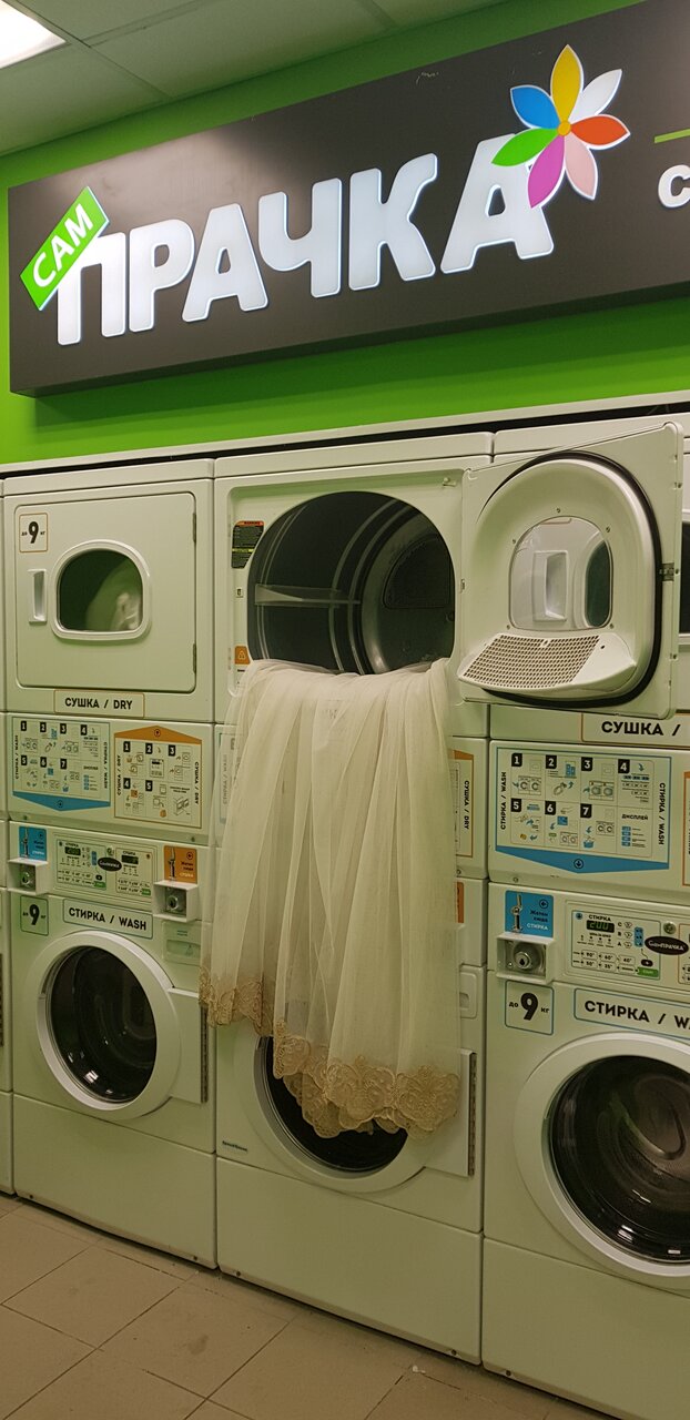 Сампрачка находится ТЦ Юбилейный (с торца здания) на цокольном этаже. Не хватает указателей конечно. Спускаемся на -1 и слева находится Сампрачка. Тут 5 стиральных машин и 2 сушки. Автомат для жетонов принимает только нал, запастись надо заранее, размен не даёт, сколько закинете, столько и жетонов получите. 2 жетона (т.е. 200р) один цикл стирки, 1 жетон (т.е. 100р) один цикл сушки. Стирка идёт 40 минут (режим можно выбрать), сушка тоже 40 минут (температуру можно выбрать). Стиральный порошок или капсулы не забываем брать с собой. Можно помыть руки, раковина есть. Есть пластиковые сиденья, для тех кто в режиме ожидания. Недалеко Макдональдс и Пятёрочка, можно перекусить или совершить покупки. Чехол от дивана постиран и просушен за 300р в итоге. Рекомендую.