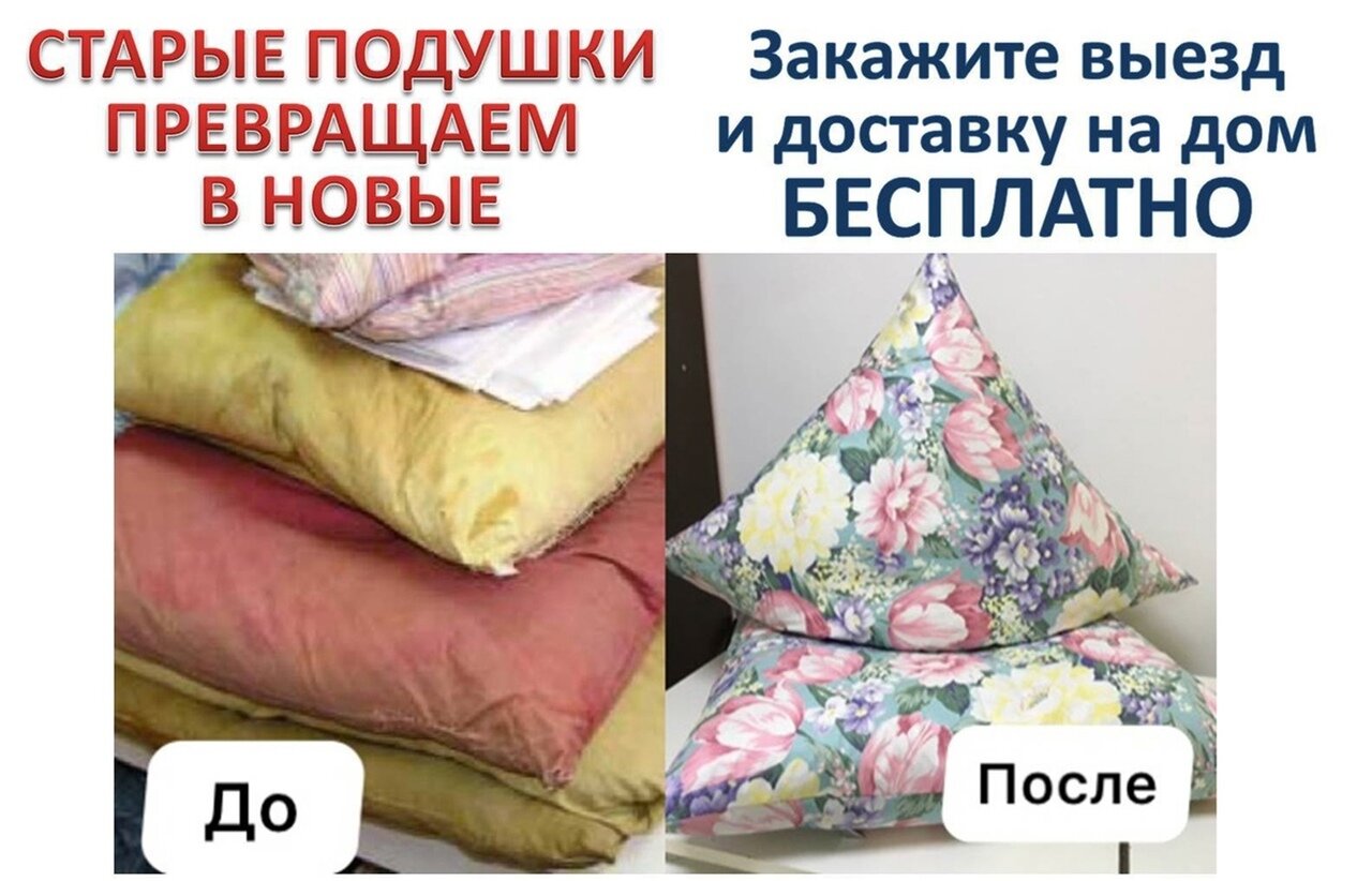 За один день приведем ваши подушки в порядок.Замена наперника. Обработка пера.Изменение размера при необходимости.Делаем ваши подушки уютными и комфортнымидля вашего сна.Стоимость услуги от 250 рублей до 450 рублей за подушку.
