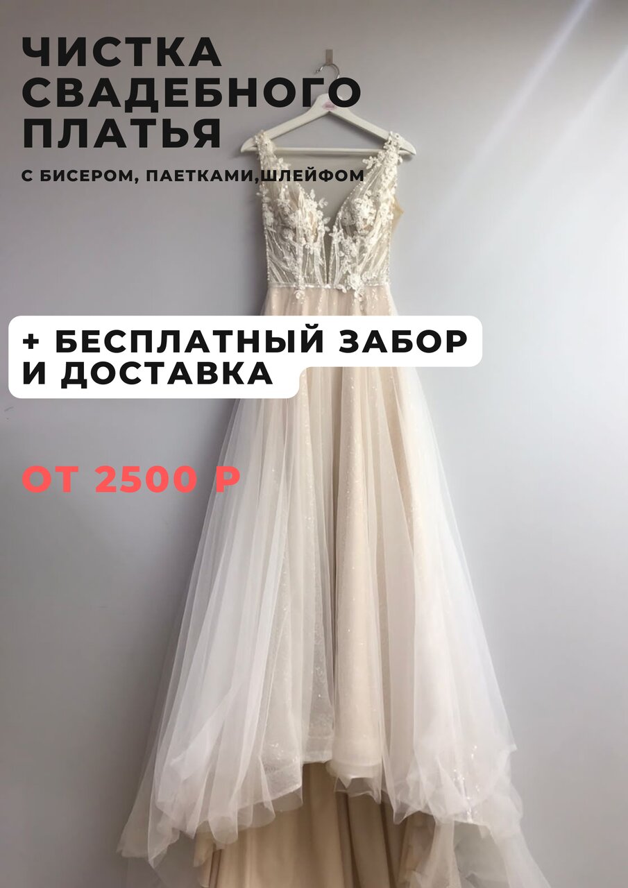 Профессиональная чистка свадебного платья включает:- удаление сложных и застарелых пятен- полную чистку изделия- отпаривание - БЕСПЛАТНУЮ забор/доставку при заказе от 3000 рублейЗакажите обратный звонок на сайте