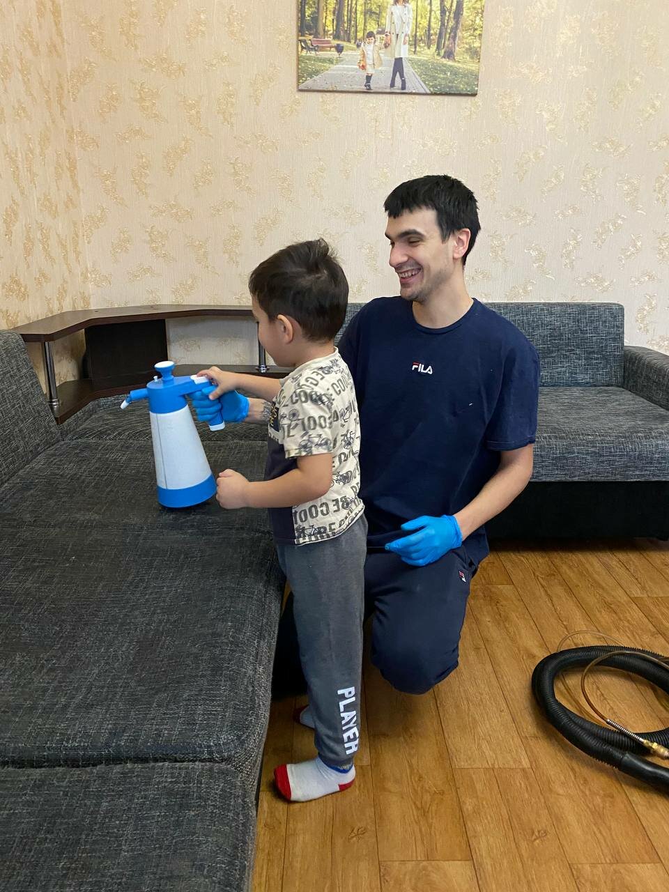 Химчистка мебельного гарнитура профессиональным экстрактором и специализированными гипоаллергенными средствами.
