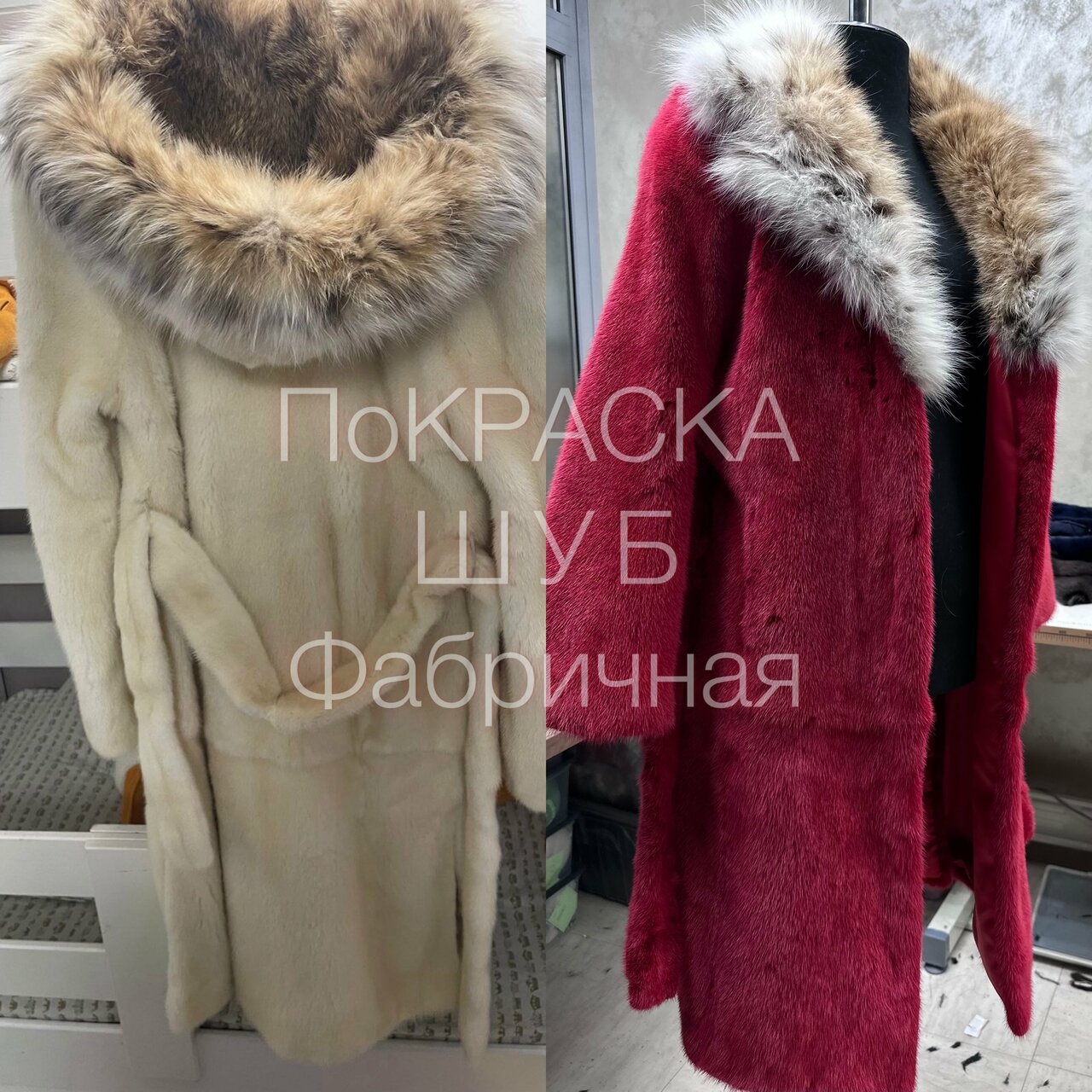 - Качественный результат покраски.; Быстрая работа.; Шуба выглядит как новая.; Мех стал мягким, блестящим и пушистым.; Приятные и профессиональные сотрудники.